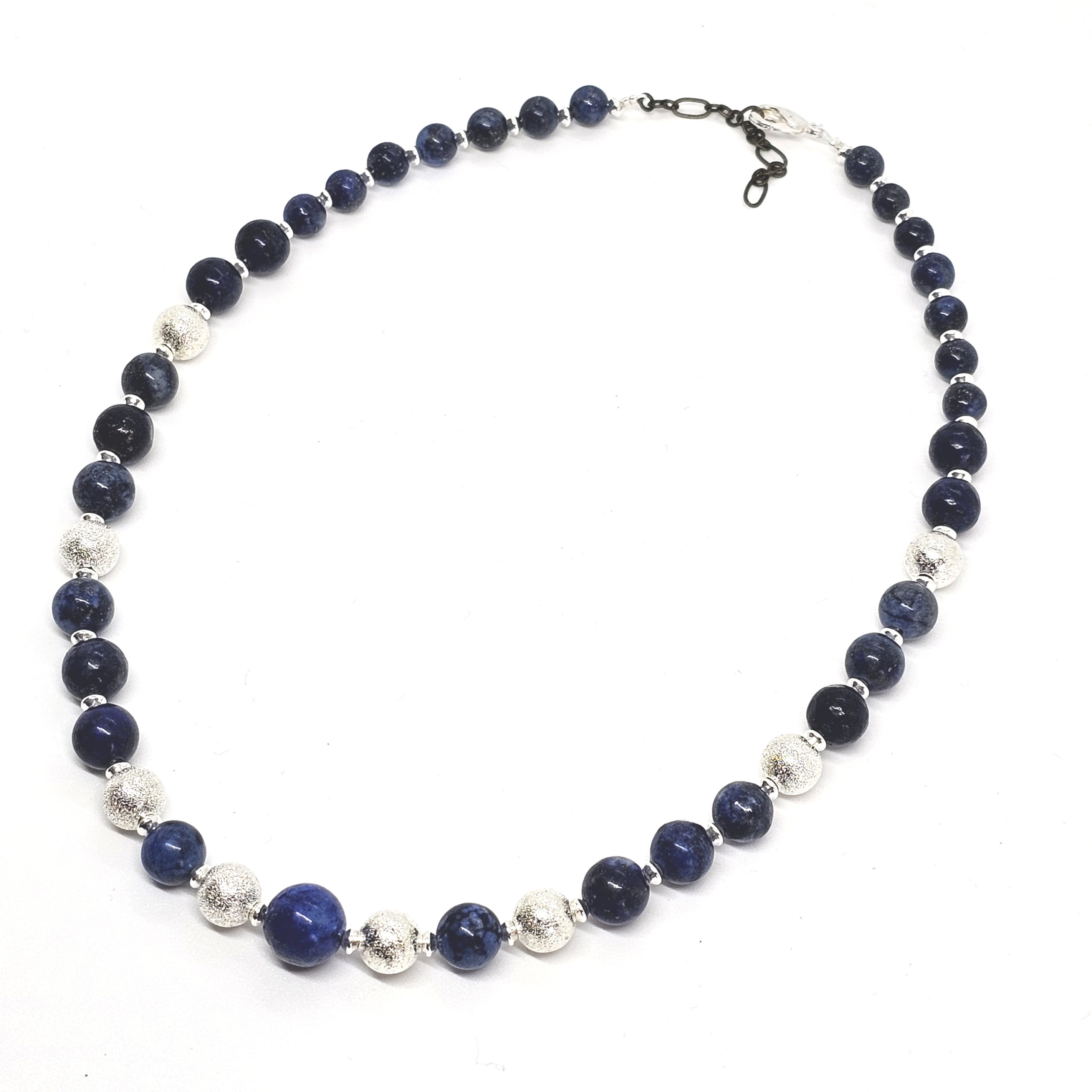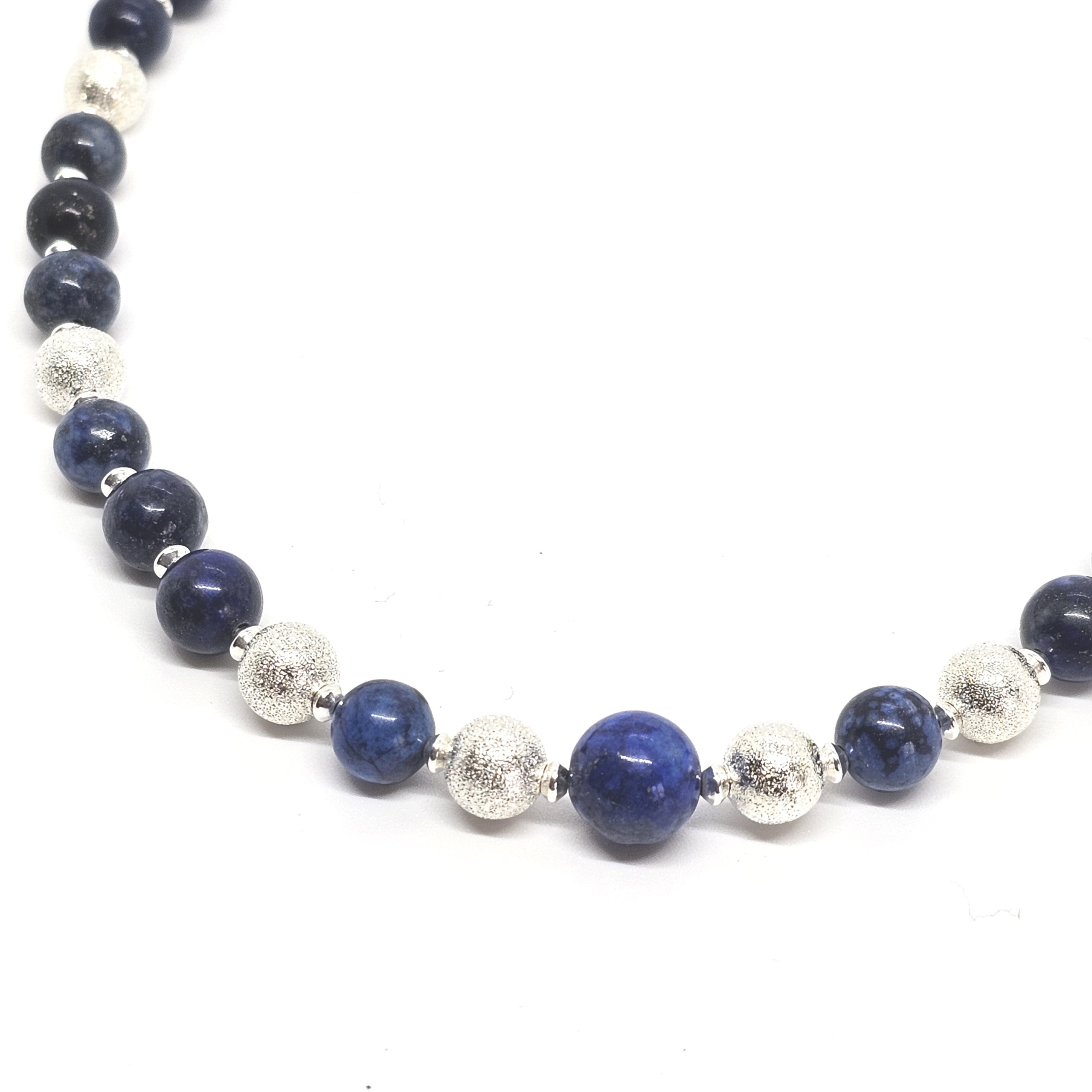Collier avec perles Lapis Lazuli et perles en argent Longueur du collier: 40-45cm. Fermoir en argent, rallonge métal.