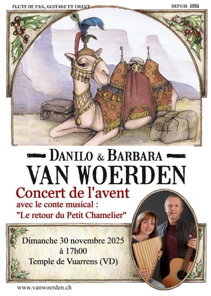 Dimanche 30 novembre à 17h00 : Concert de l’avent avec le conte “Le retour du Petit Chamelier” – Temple de Vuarrens